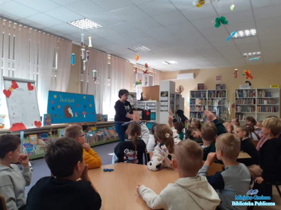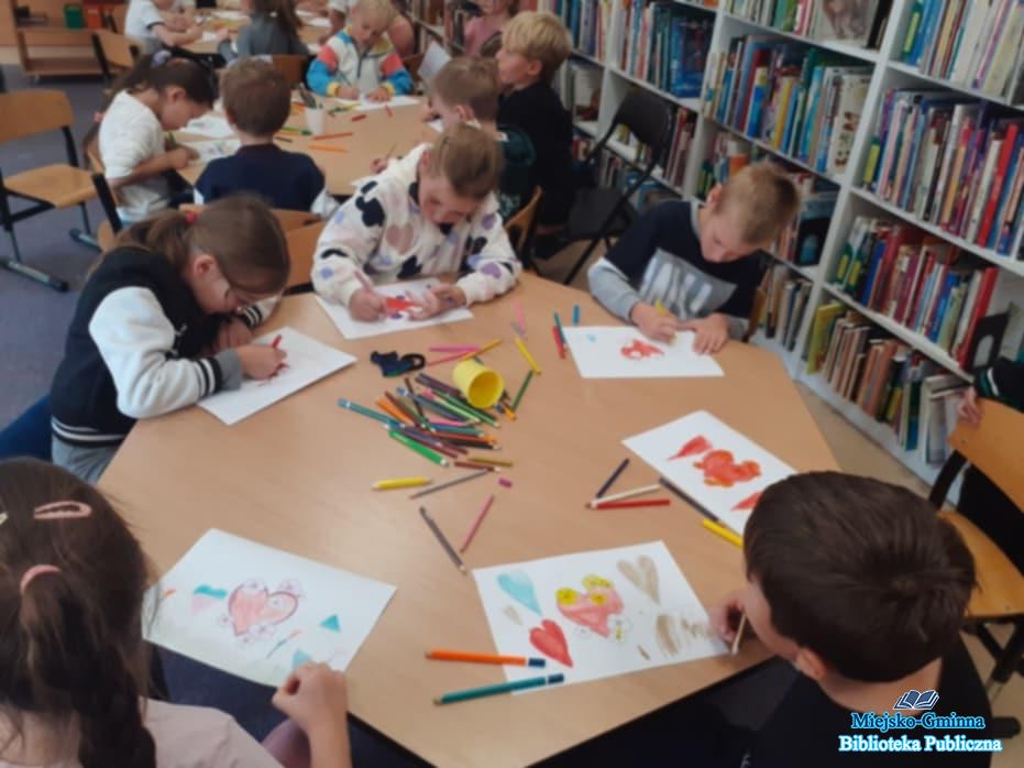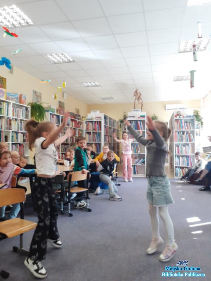 W drugiej części spotkania dzieci poznały zasady korzystania z biblioteki, dowiedziały się, jak wypożyczać książki, i z zainteresowaniem przeglądały kolorowe regały w poszukiwaniu ciekawych tytułów. Spotkanie przebiegło w radosnej atmosferze, a pierwszoklasiści opuszczali bibliotekę z uśmiechami na twarzach – bogatsi o nową wiedzę i zachęceni do czytania z sercem!