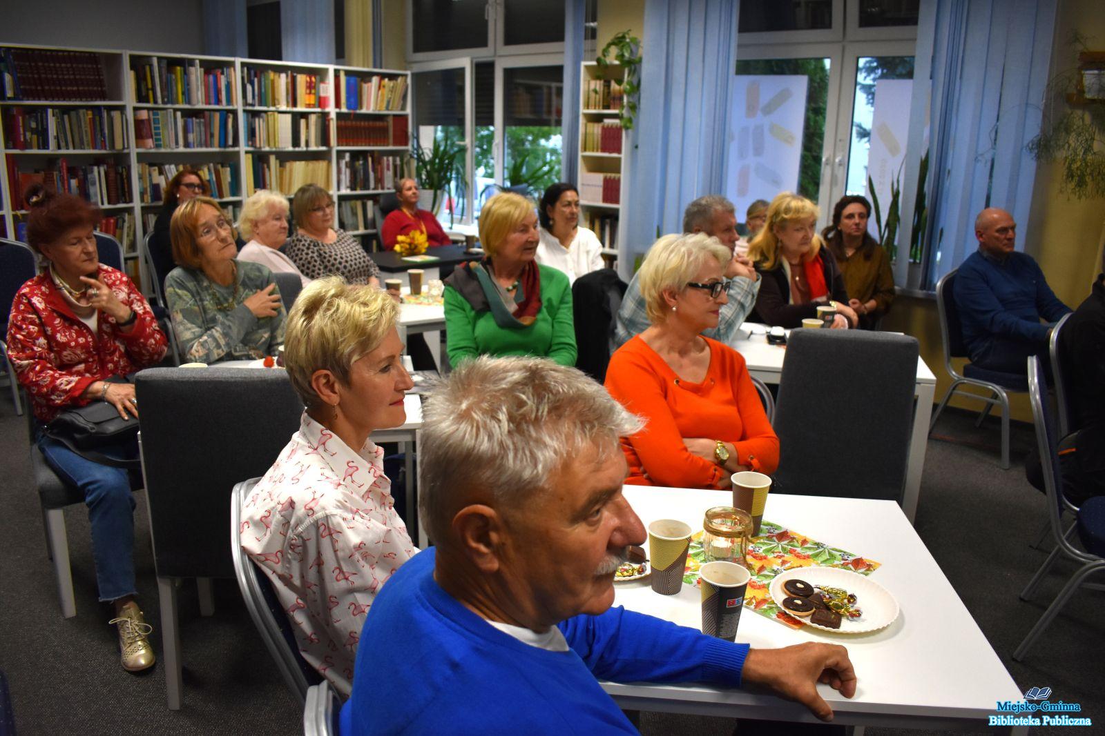 Wszystko zostało już wcześniej przygotowane, jak potrafiliśmy najlepiej. Stonowana atmosfera Czytelni, kompozycja i rozkład stolików, wszelkie prace przygotowawcze, zakupy i wiele innych, w tym przepych klonowych liści... Nasz wysuwany ekran już czekał z podłączonym laptopem. Dalej uchylone lufciki zapewniające dopływ świeżego powietrza. Na stoliczku obok, wrzątek. Kawa i herbata z baterią filiżanek, ciastka i owoce.