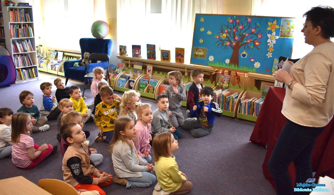 Po części czytelniczej przyszedł czas na twórcze działania – przedszkolaki wykonały piękne, wiosenne prace plastyczne, wykazując się pomysłowością i kreatywnością. Spotkanie urozmaiciły także zabawy ruchowe, które dostarczyły dzieciom dużo energii i radości.