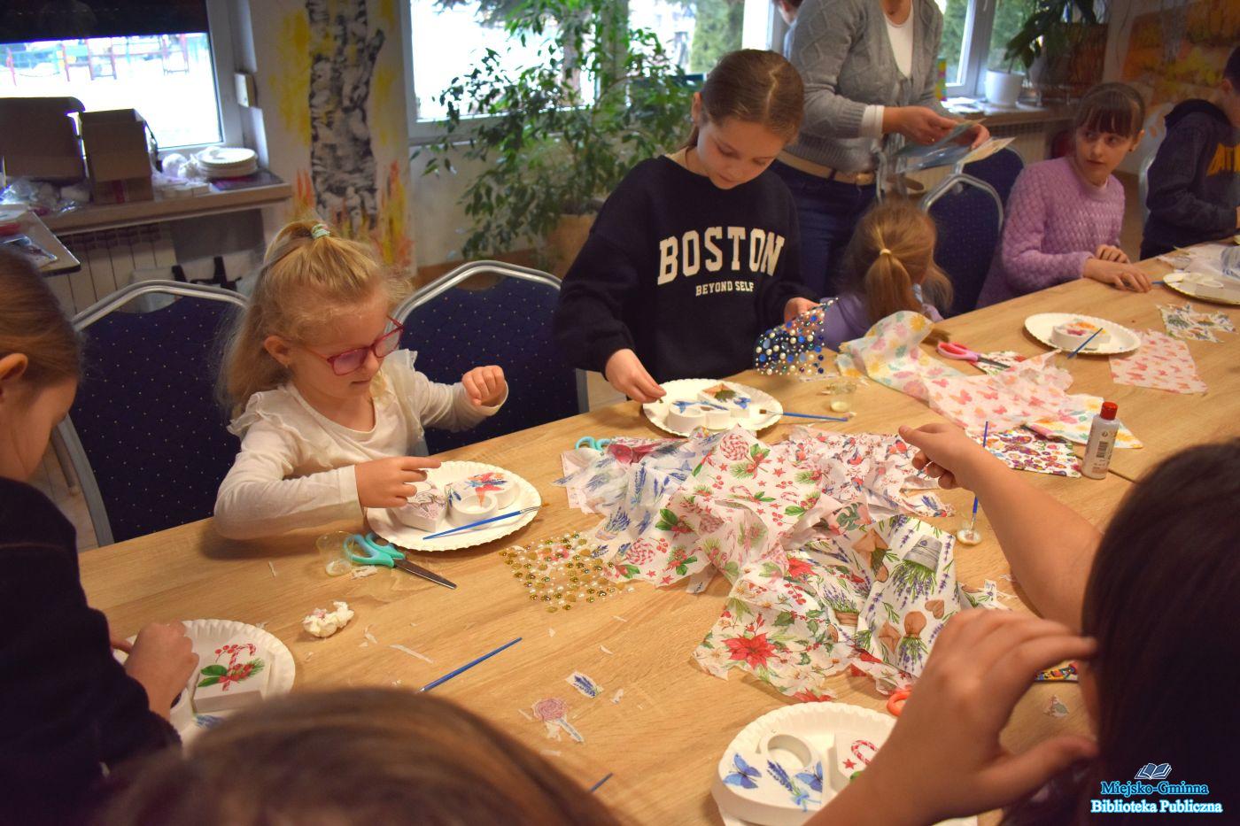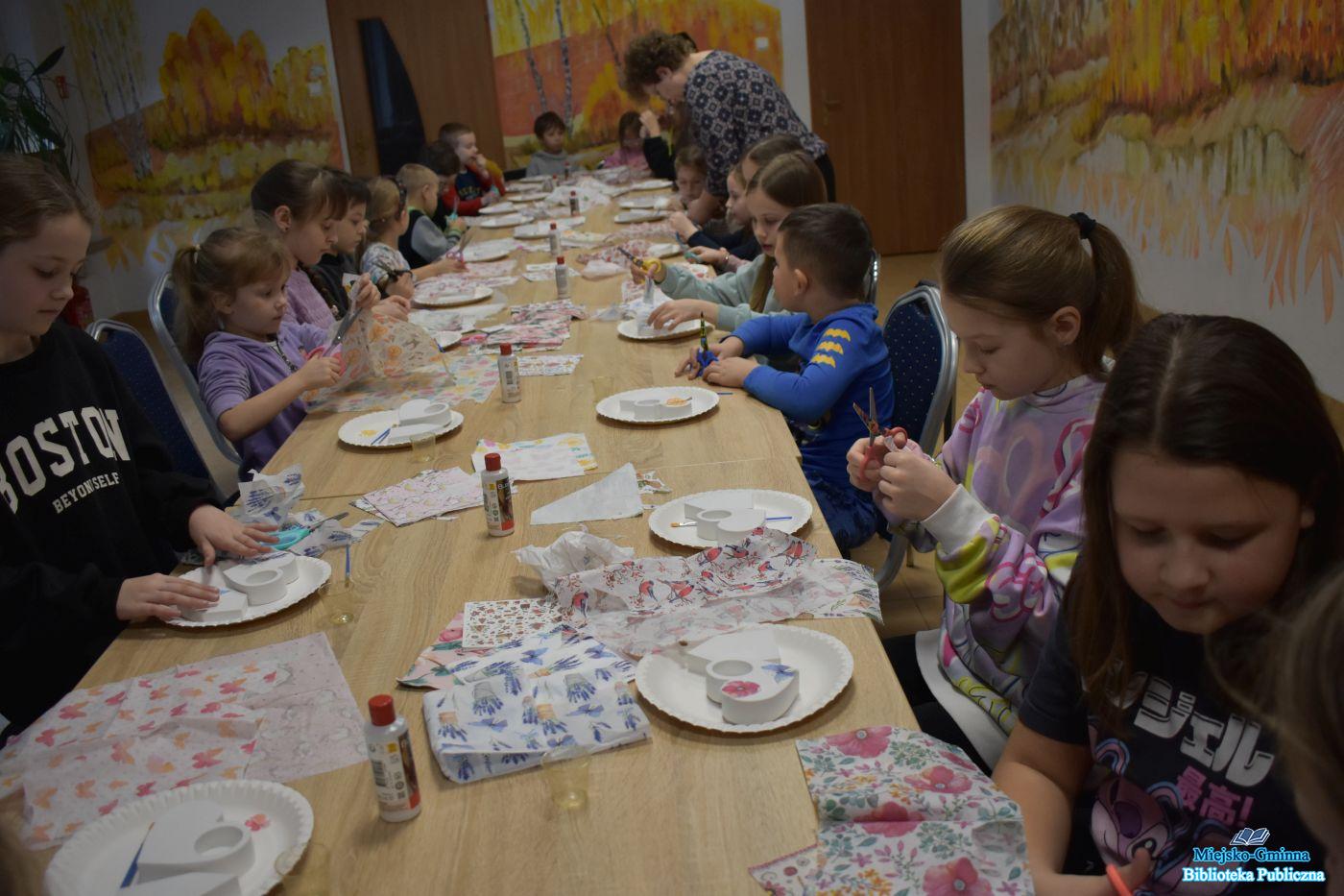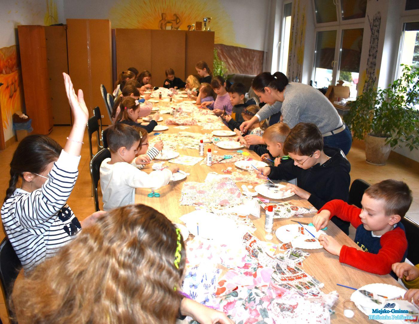Podczas zajęć „Magiczny Decoupage” nasza biblioteka zamieniła się w prawdziwą pracownię małych artystów.