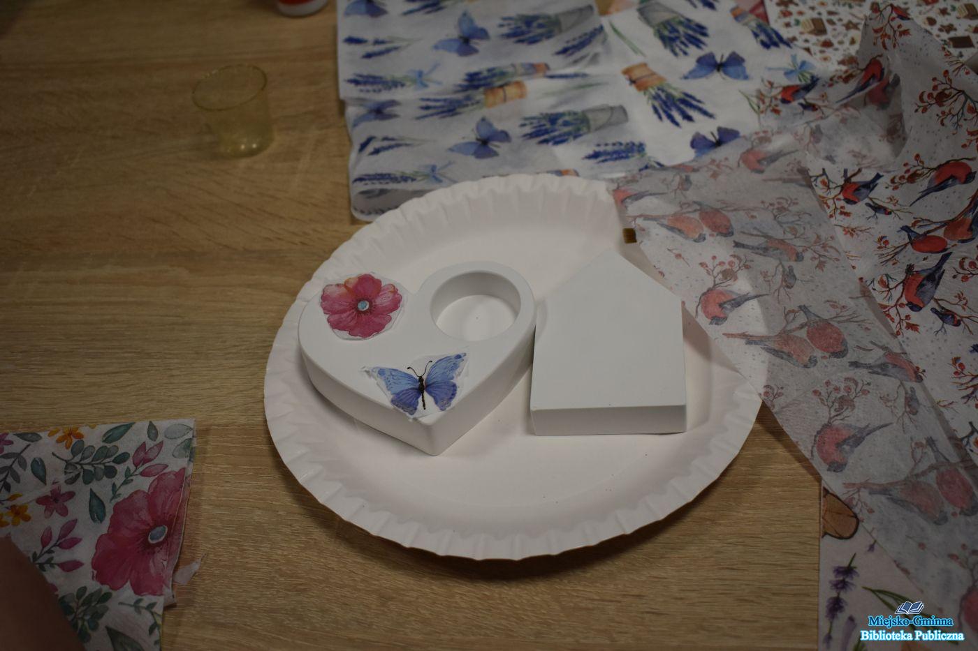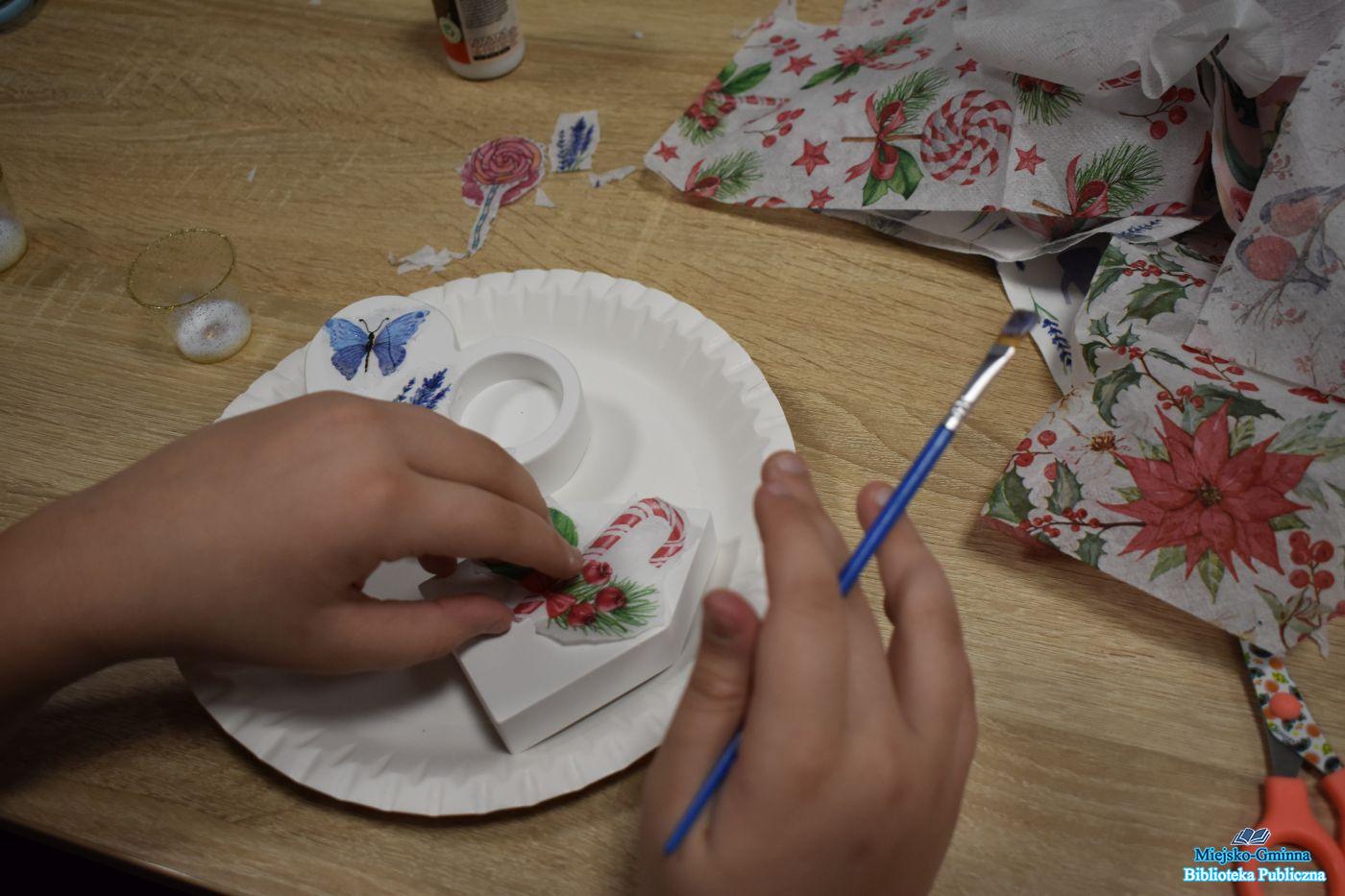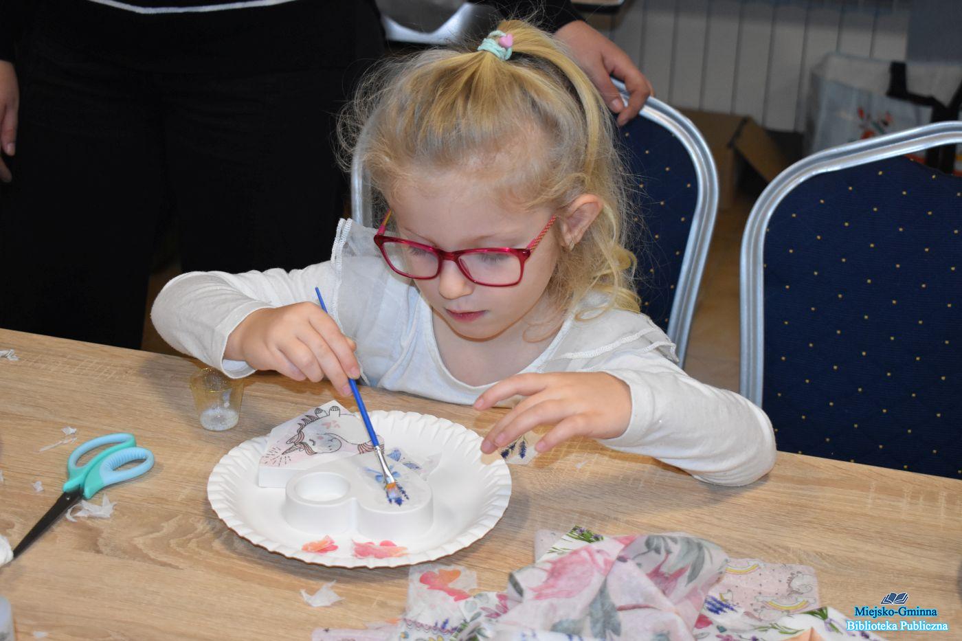 Podczas zajęć „Magiczny Decoupage” nasza biblioteka zamieniła się w prawdziwą pracownię małych artystów.