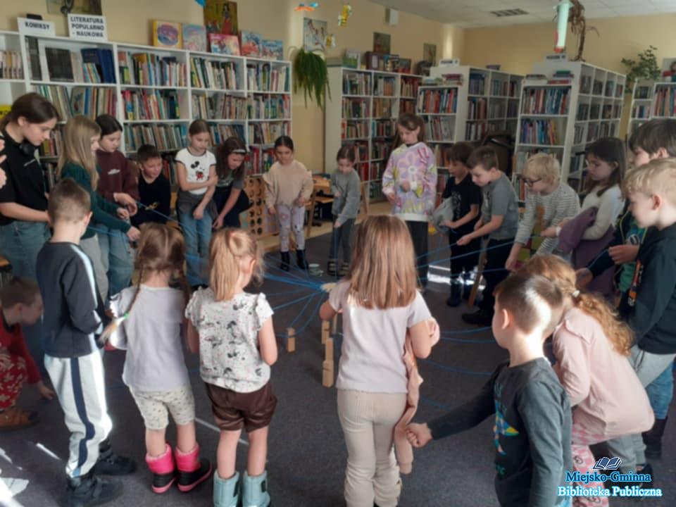 Wraz z rozpoczęciem ferii zimowych biblioteka wypełniła się radością, śmiechem i twórczą zabawą. Pierwsze spotkanie feryjne zostało poświęcone zabawom logiczno-zręcznościowym w wersji XXL, które cieszyły się ogromnym zainteresowaniem wśród najmłodszych uczestników.