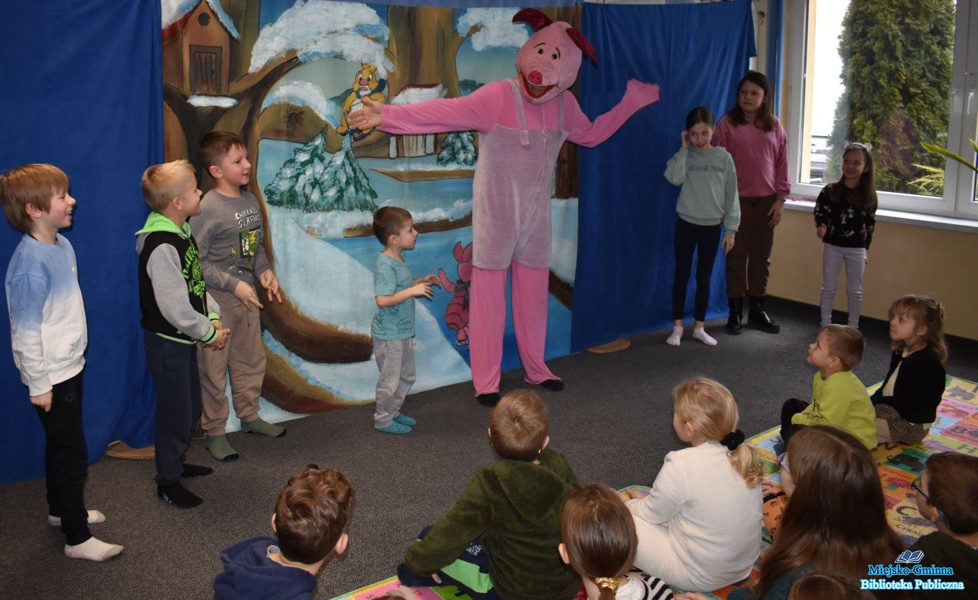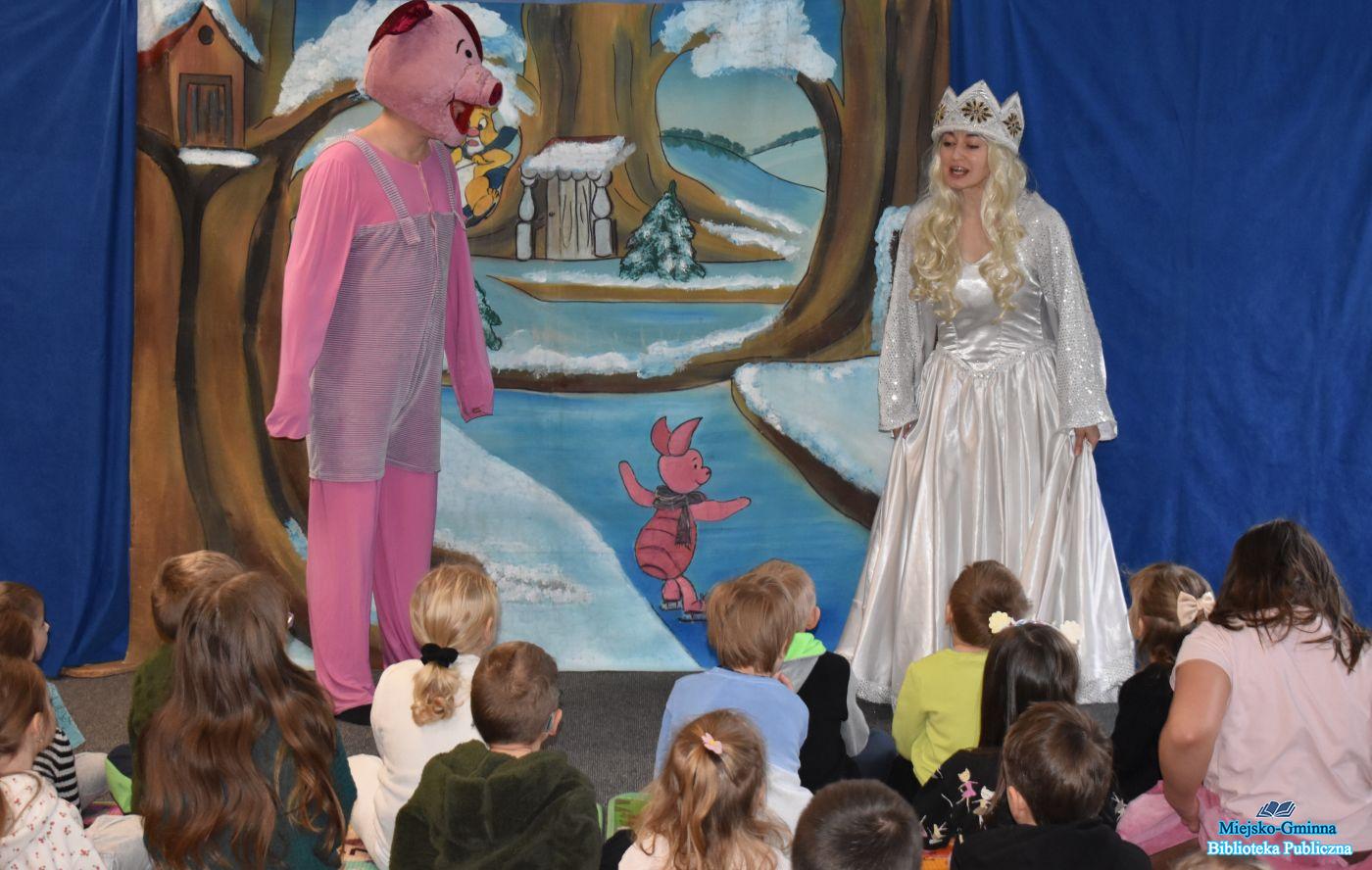 Na zakończenie ferii zimowych nasza biblioteka zamieniła się w prawdziwie magiczne miejsce pełne śmiechu, radości i dziecięcej wyobraźni. Wszystko za sprawą spektaklu teatralnego dla najmłodszych „Zima u Kubusia", który dostarczył małym widzom mnóstwa niezapomnianych wrażeń.